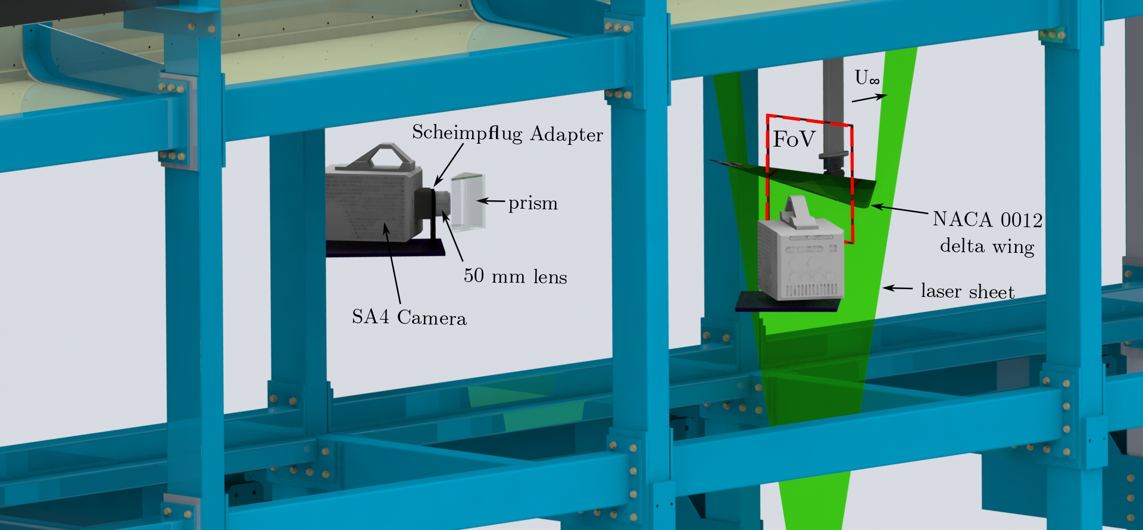 A 3D reconstruction of the stalled flow over a delta wing was generated using the ‘scanning’ method above. Renders of the fluid velocity it’s derivatives give deep insight into the structure of airflow over similarly shaped aircraft during stall.